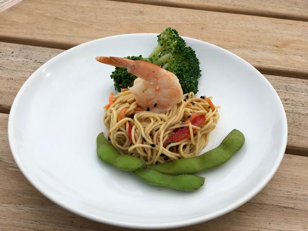 However, I'm just not sure sure what I was attempting with the broccoli. I think I felt some kind of obligation to get it on the plate, since it was part of the meal, but it's really not doing much to improve the photo. Arguably the noodles and shrimp on their own do plenty of good work.